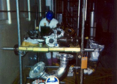 1. 供水系统的部分不锈钢管道 2. 直径3英寸的不锈钢管道施工准备 3. 利用模具压制Belzona1111使其成型