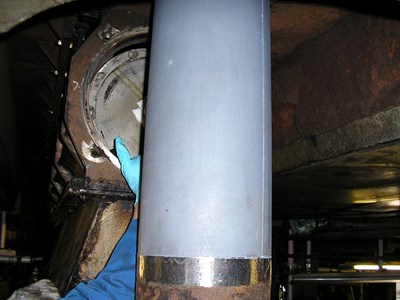 - The shaft in situ showing the extent of the damage