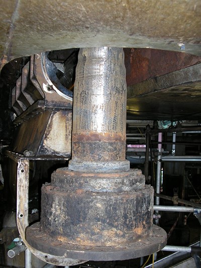 Problem: The main shaft on the agitator had worn down under the stuffing box over a number of years by up to 2" overall on the diameter over 21" of the shaft length.