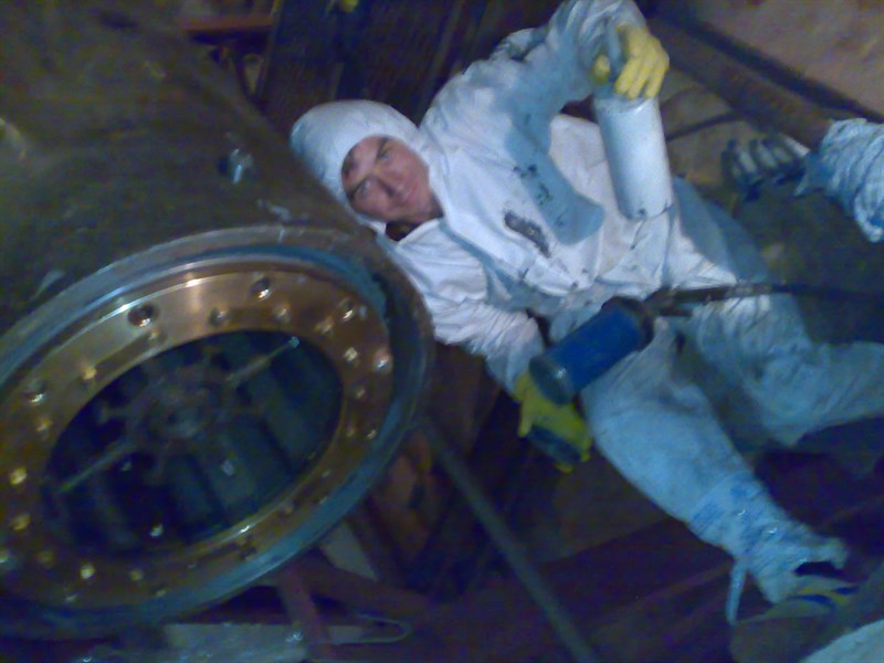 - View of Belzona® 1111 sealing between bearing lining and body frame of bracket before the injection