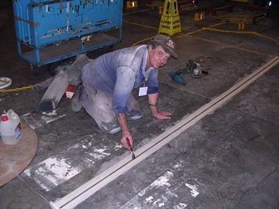The application was carried out in accordance with Belzona System Leaflets FPA-5 and FPA-6. The existing joint material was removed and the concrete slab edges rebuilt back to square using the Belzona 4111 before pouring the Belzona 2221 system to seal the joint.