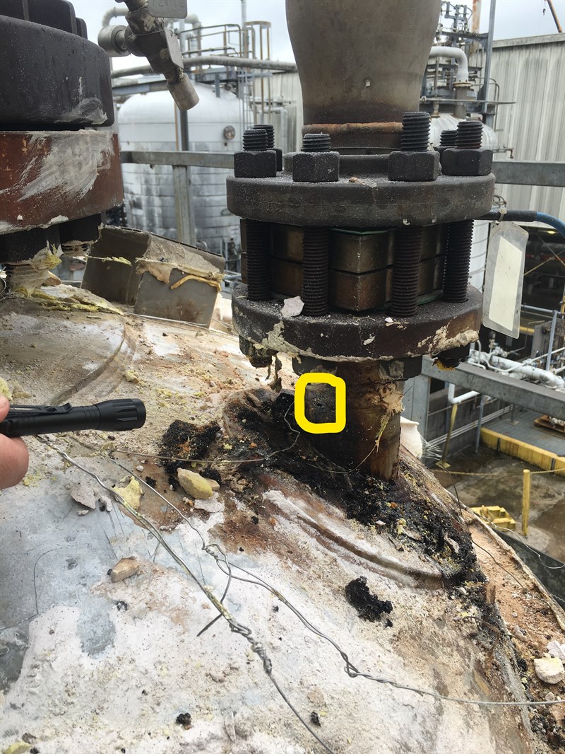 A hole in a weld developed due to Corrosion Under Insulation on nozzle of an Acrylic Acetate vessel. The plant needed a solution to get them 3-4 months of service until a turnaround without losing any production time.