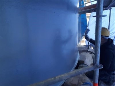Anti-corrosion protection of a sulfuric acid tank together with the existing infrastructure.