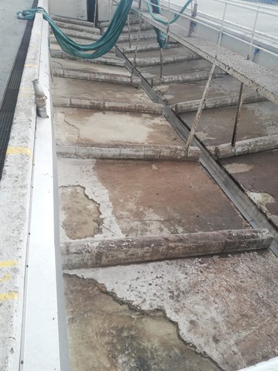 The distributor had been discussing this application with the client for 1 & 1/2 years prior to winning the project. The total area to be coated was 270m2 and over 40 units of Belzona 5231 were used, in addition to the Belzona 4111 used for rebuilding the edges of the chemical channel.
