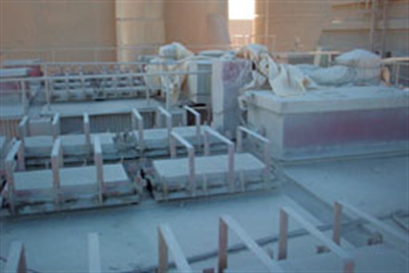 Problem: The Electrostatic precipitators at this large cement manufacturer operate at 70kv and 200°C (392°F). As a consequence they are insulated to conserve heat energy. As usual the insulation is protected by the use of jointed steelsheeting which does not prevent moisture from penetrating the insulation layer. The result is under insulation corrosion made worse by the fact that the site is coastal and the atmosphere is salt-laden.