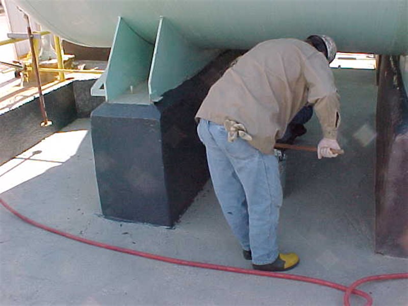 Problem: Spill of 98% sulfuric acid was neutralized with caustic. The exotherm badly damaged the coating applied 2 years previous.