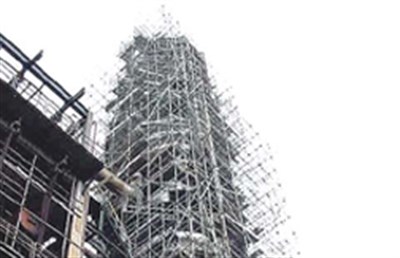 General view of the tower. The degree of corrosion clearly evident on the support rings. Application underway. Application complete.