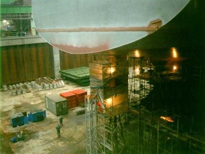 In this case the synthetic bearing was seated in a steel carrier ring. Bonding with Belzona® 1321 prevents the risk of crevice corrosion and fretting. On this vessel the stainless steel pintle liners are also bonded to prevent galvanic corrosion. Over 30 ships in this class have used this installation method in both Germany and the USA.