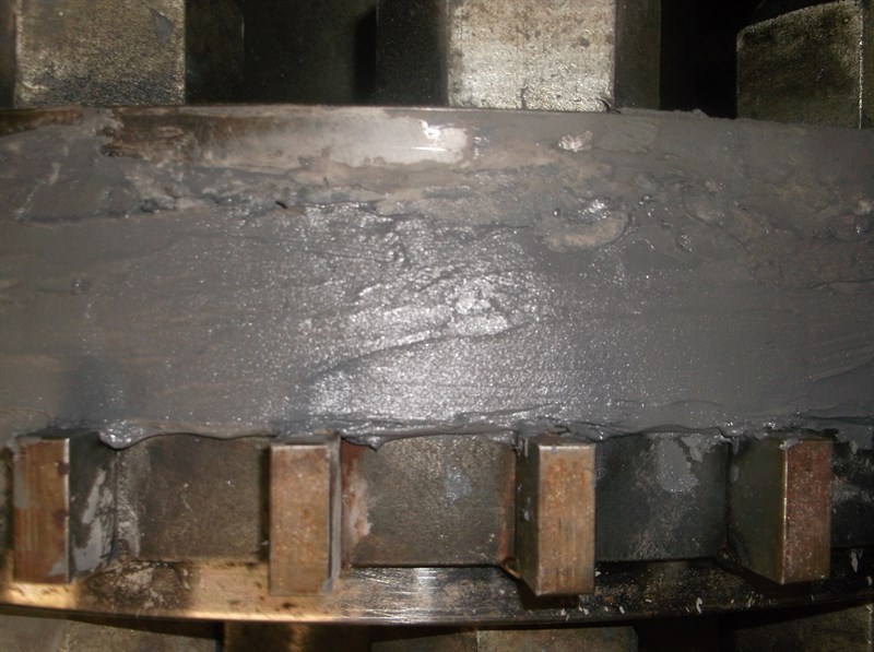 The repair was carried out following a modified version of Belzona Know-How System Leaflet VPF-11. A hand grinder was used to clean and prep the steel. Belzona 1212 was mixed and most of its working life allowed to pass prior to application in order to stop the oil leak.