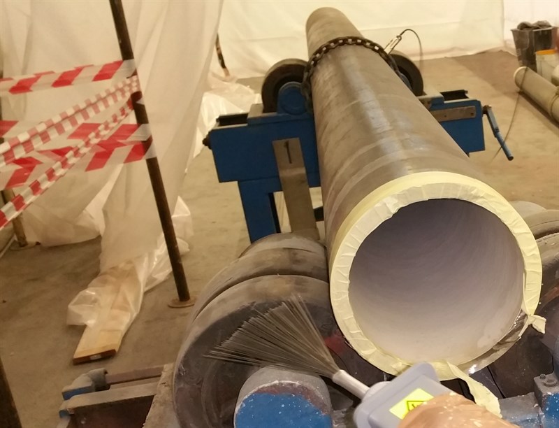Problem: The pipeline is used as a monolithic dielectric joint. The pipeline's diameter varied between 8 and 24 inches and individual lengths up to 10m. The carbon steel substrate required protection against chemical and abrasive attack at elevated temperatures.