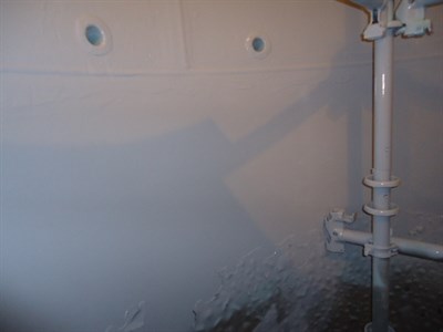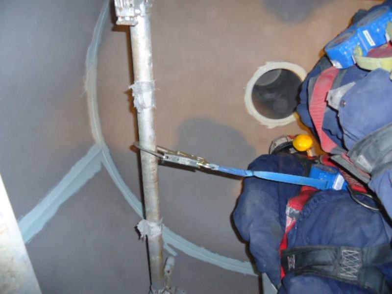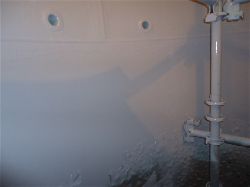 The application was carried out in accordance with Belzona Know-How System Leaflet TCC-5. After grit blasting to SSPC-SP 10, the surface was Bresle tested for salt soluble contaminants, cleaned, and degreased with Belzona 9111. Due to high levels of relative humidity, a dehumidifier unit was utilized to prevent flash rusting of the prepared surface, thus avoiding any risk of corrosion prior to coating. Following this, Belzona 1593 hand applied lining was used for stripe coating and nozzle lining. The crew continued with the application of Belzona 1523 using a plural component Graco airless spray system. The coating was applied as a two-coat system with contrasting colors. The application was reported to be a success and the material was found to "spray beautifully”. Coating was allowed to cure for inspection. High voltage test was conducted and spotted pinholes were repaired accordingly using Belzona 1593.