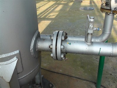 Problem: Corrosion around the flanged connections, bolts and welding area.