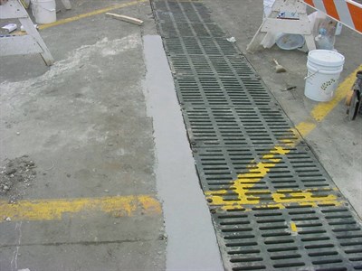 Problem: Heavy buses rolling over drainage channel cracked the concrete curb. Client also wanted to compare Belzona 4111 to concrete as a repair material in side by side comparison.