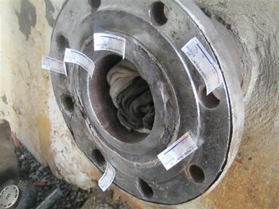Problem: Cutting and welding was deemed to be unacceptable due to the damage that would be caused to the lining inside the nozzle and the safety concerns. A flange face and surrounding bolts had become corroded from contact with Sulphuric Acid. The loss of metal in the flange was causing significant leaks around the flange. This led to environmental and safety concerns.