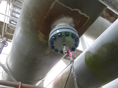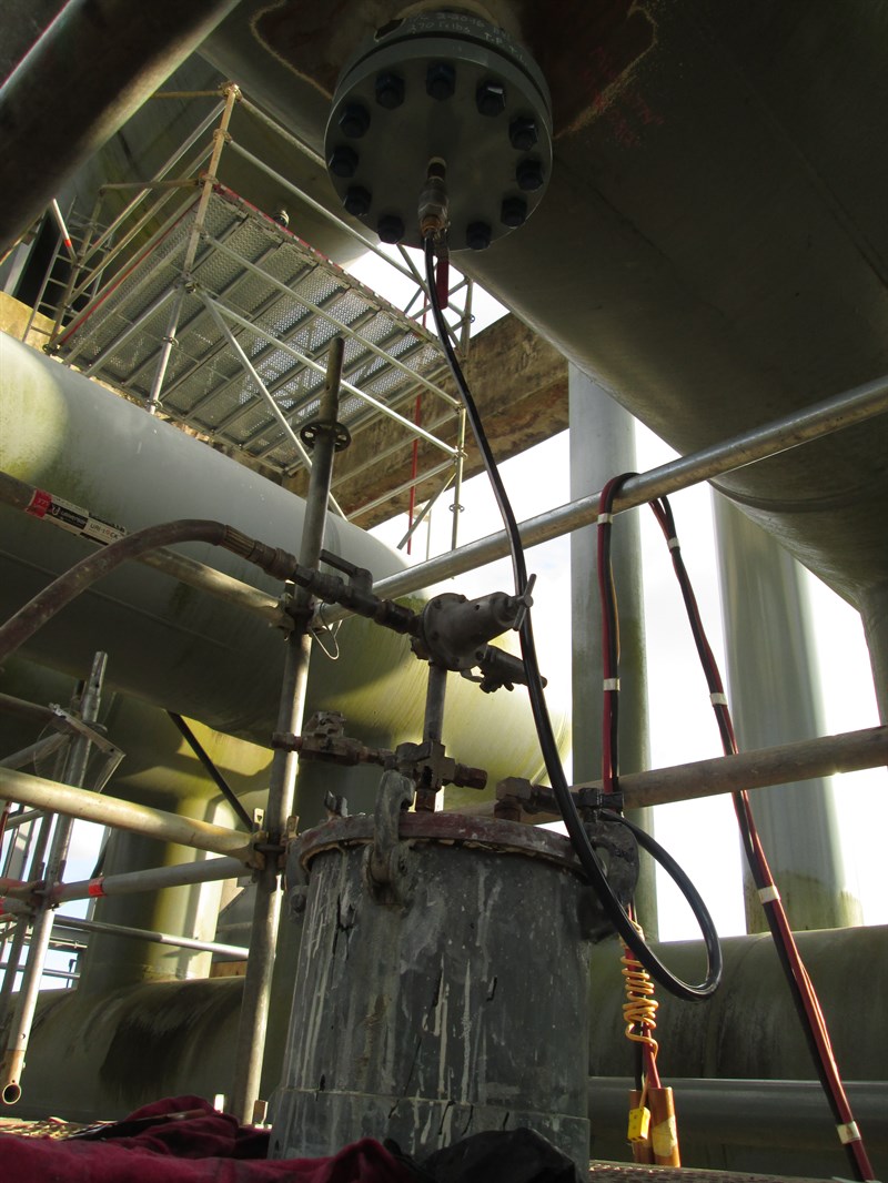 Problem: "Dog Leg" nozzles ranging from 2" - 4" were suffering severe corrosion and wall loss due to condensate build-up in the nozzle and lack of draining or cleaning.