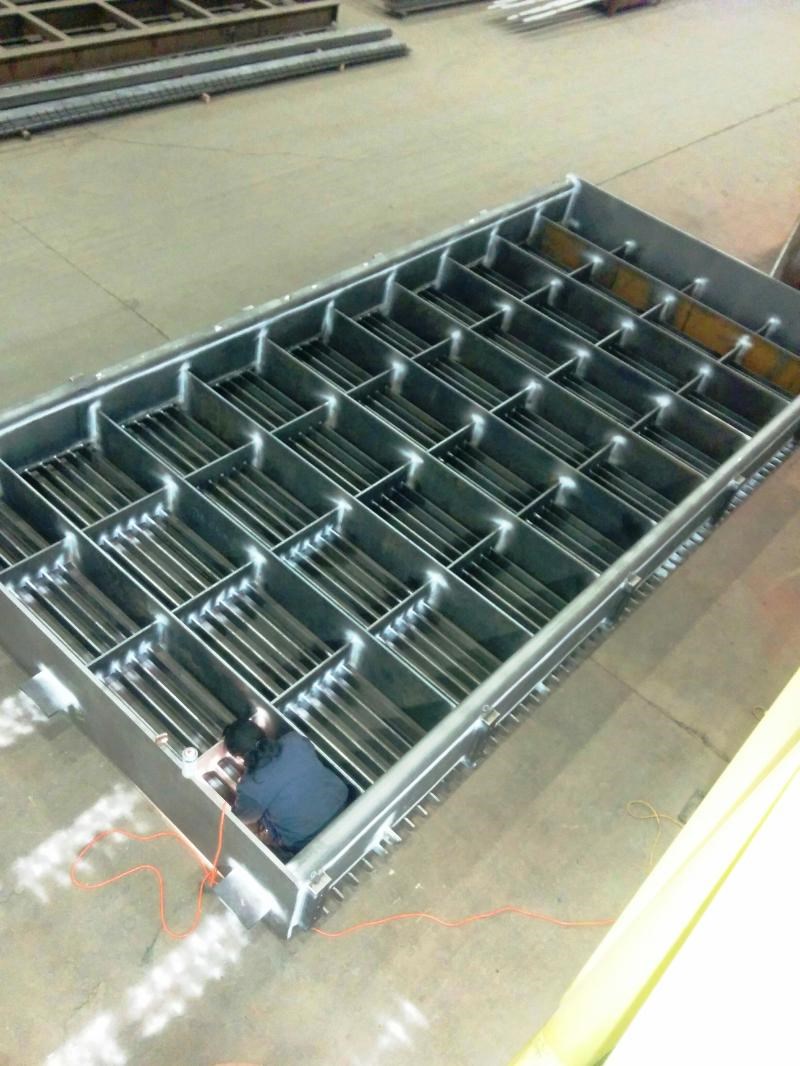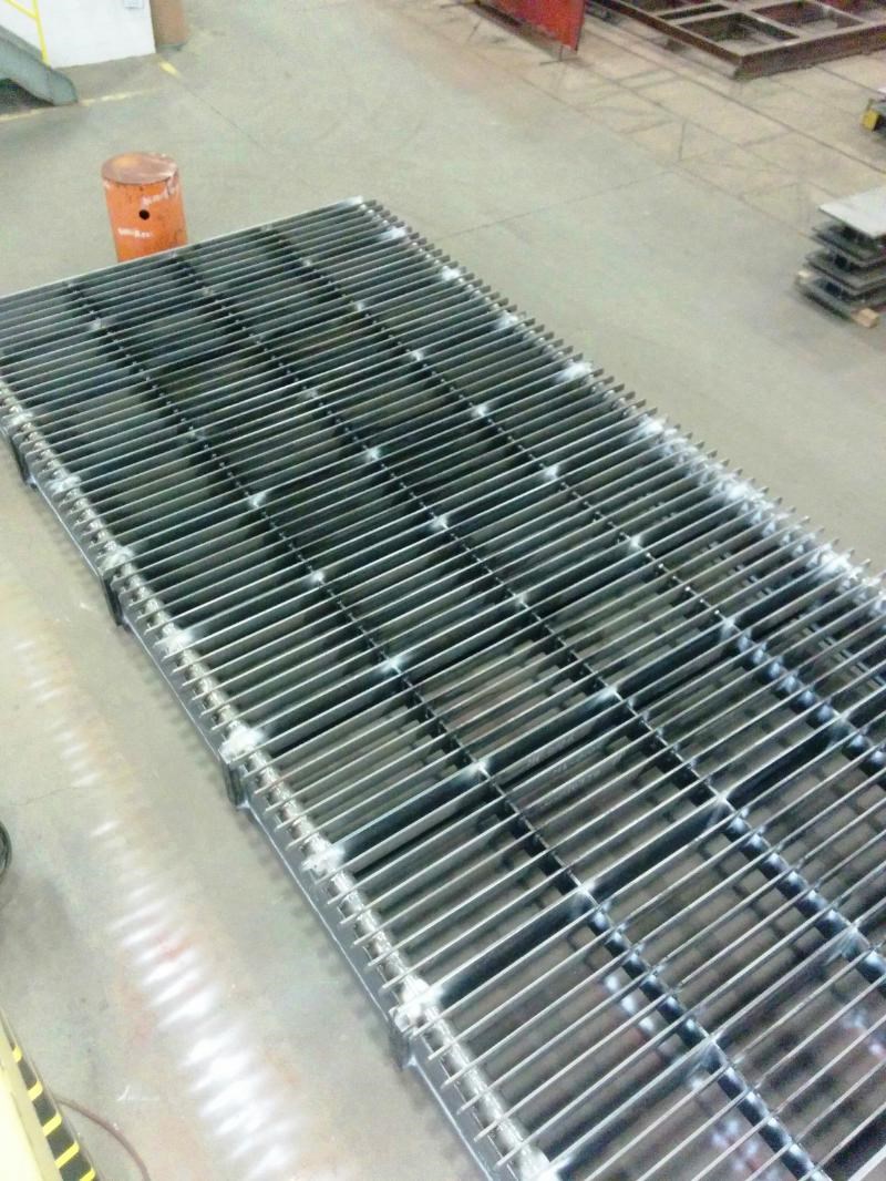 - Fabricated trash gate undergoing NDT inspection to welded joints