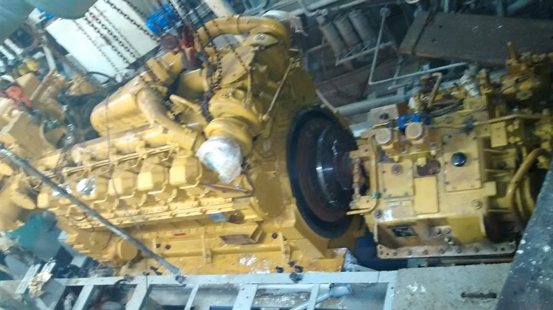 Drive system: Engine with 2.250 bHP power and reduction gears in the machine room of the fishing boat.