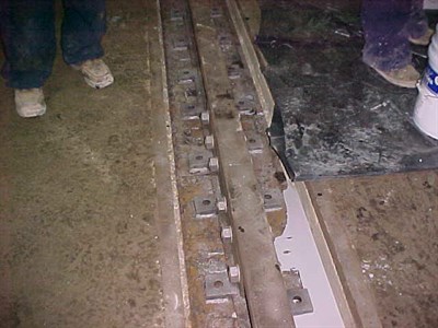 Application was carried out in accordance with modified Belzona Know-How System Leaflet FPA-10. The old grout was removed and the rail was alligned and shimmed. A slurry mix of Belzona® 4111 was poured the length of the tract.