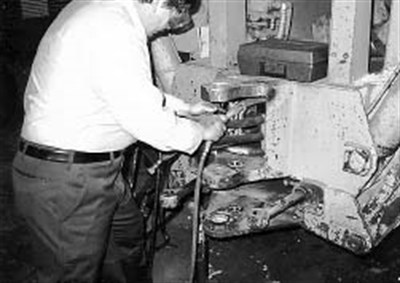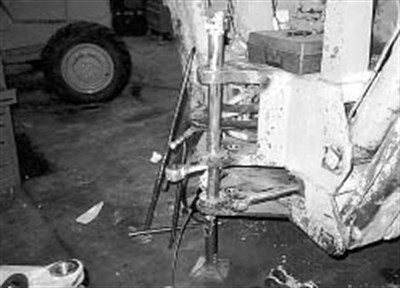 Typically, rental units tend to get abused. The previous year, a similar repair was done for this customer on another unit damaged when the machine was being transported on the highway. The swing arm was left up too high and hit an overpass at 55 mph. Despite numerous repairs over the years, the swing arm bushing fits have never had to be redone as of January, 1994. About $30 of Belzona® 1111 Super Metal was used by one man in 1/2 hour to do this fix. A conventional repair was quoted at $7,500.