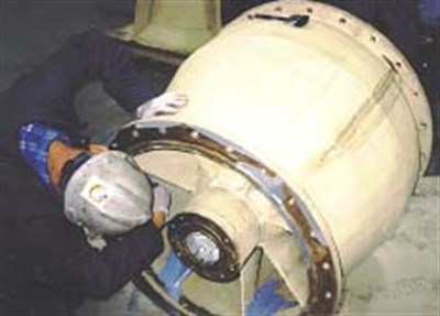 Application of Belzona® 1341 to a diffuser bowl begins. Finishing touches to an impeller shown here. Flow diverters and all internal components were protected with Belzona® 1341.