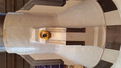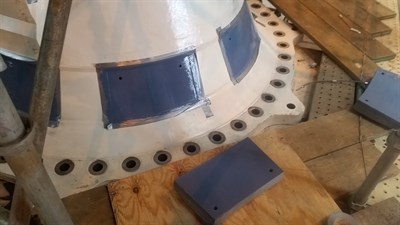 Application was carried out in accordance with a modified version of Belzona System Leaflet VPF-15. The areas to be bonded were fully grit blasted and degreased in accordance with Belzona surface preparation protocols beforel the bearing pads were bonded into position using Belzona 1321, These were accurately located using screws and keyways. Subsequently, the bolt holes were filled using Belzona 1121, adding further protection.