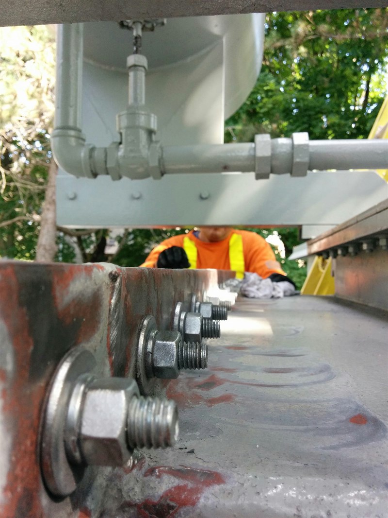 The application was carried out in accordance with Belzona Know-How System Leaflet TCC-1 for sealing crack, porous welds, bolted and riveted joints on tanks. The surface was prepared using a grinder and wire wheels electric hand tool. Belzona 1161 and Belzona 9341 was applied to the area in accordance with Belzona Instructions For Use.