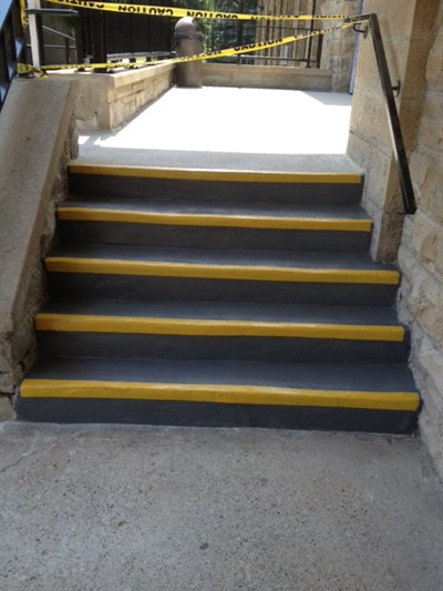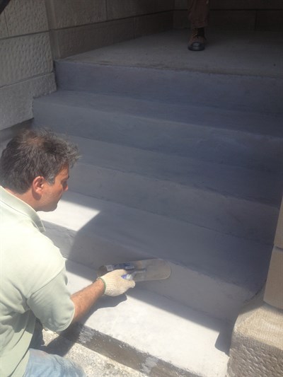 Problem: The steps had suffered severe damage and spalling caused by weathering, salt and freeze thaw effect. Large cracks and spalled stone were visible making the usage of the steps dangerous.