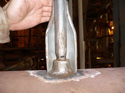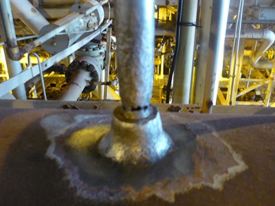 Problem: The customer had a 1" inlet into a 20" flare line. The threads of the 1" pipe were corroded and holed through. Any gas leaking out would be a major safety hazard.