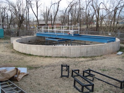 The aluminum shield on the clarifier extends 16 inches below the water line. This is the only one serving this small city.