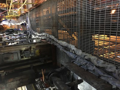 Belzona 1111 was used to fill in the rough and pitted areas. In order to be as economical as possible for the customer, Belzona 5811 was applied as the first coat. The top coat was Belzona 1341. The application was started using a heated plural component pump with insulated heated lines. Because of the length of the hoses needed to go from the catwalk where the pump was staged to the interior of the condenser, the product cooled too much before application so the contractor changed to a brush and roll method. The application was carried out in accordance with Belzona System Leaflet TCC-5.