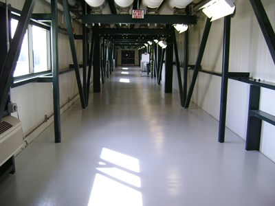 Problem: Previous floor coating was not bonded well in many places and needed to be replaced. This is a high traffic interior crosswalk in the plant and needed a non-slip surface.