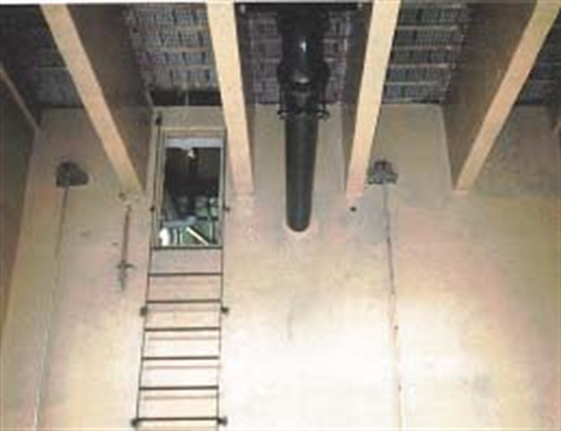 - Outside view of the tower, drainage and clean-up begins.