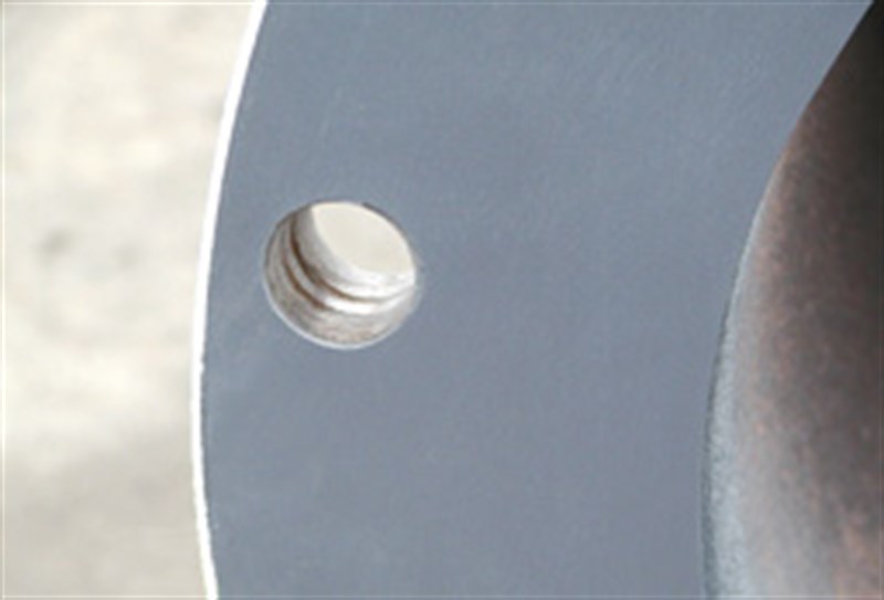 The galvanising was grit-blasted off and a new sealing face formed using the Belzona® 1321. Rubber plugs were inserted to prevent excess material seeping in to the boltholes. Metal shims were inserted to ensure an adequate thickness of Belzona® 1321 was formed on the flange face.