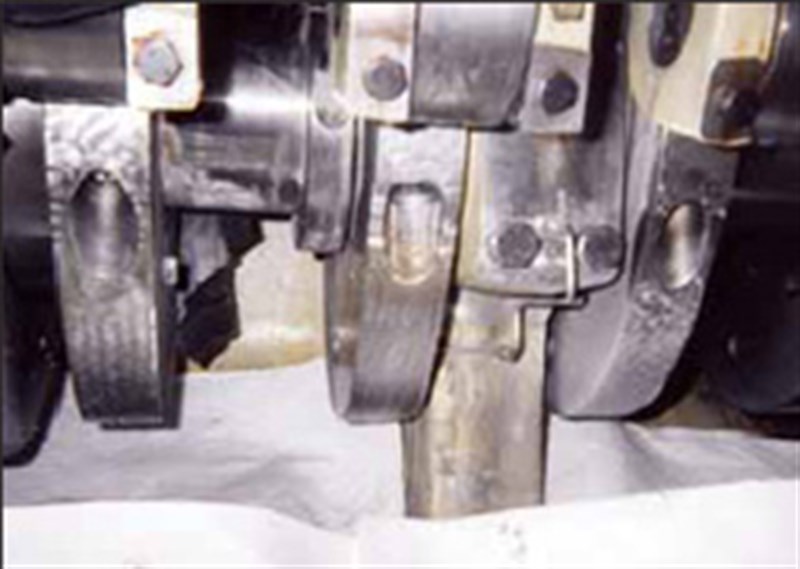 The application was carried out in accordance with a modified version of Belzona Know-How Systems Leaflet MPT-12. Damaged areas were ground down. Following degreasing, Belzona® 1111 was applied, then ground/sanded back to profile.