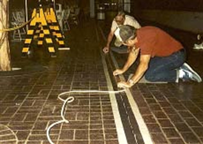 Problem: Existing sealant breaking loose, creating a pedestrian safety hazard.