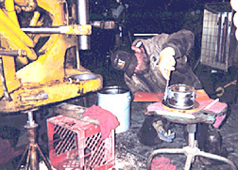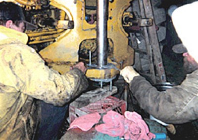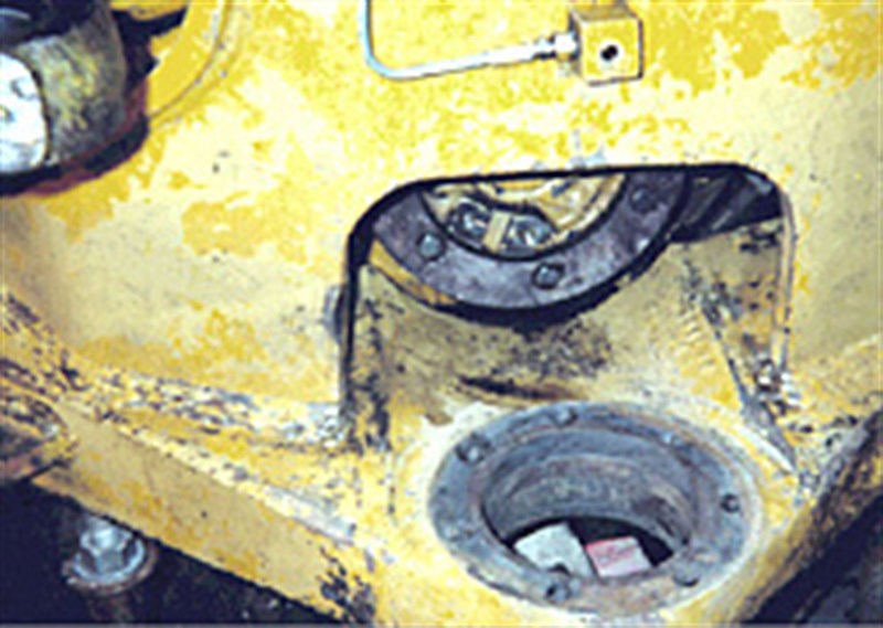 Vertical pivot bearing housing on a piece of heavy equipment.