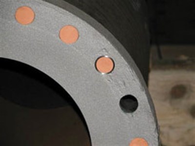 - Close up showing corrosion damage and plugs and shims fitted into place