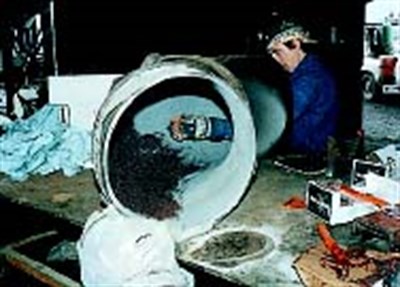 To gain access in the longest pipes, windows were cut opposite the worn areas. Product was applied and the windows welded together once installed. Rebuilt piping system lasted four years before it was replaced. $1,000 of product extended the life of the piping system and saved the customer tens of thousands of dollars.
