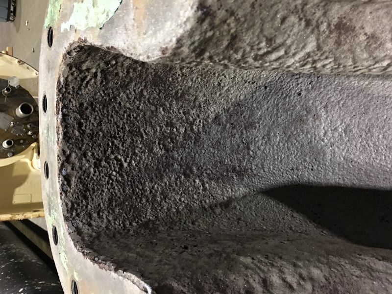 1. Pitting and degradation of the pump after it was blasted with Black Beauty.