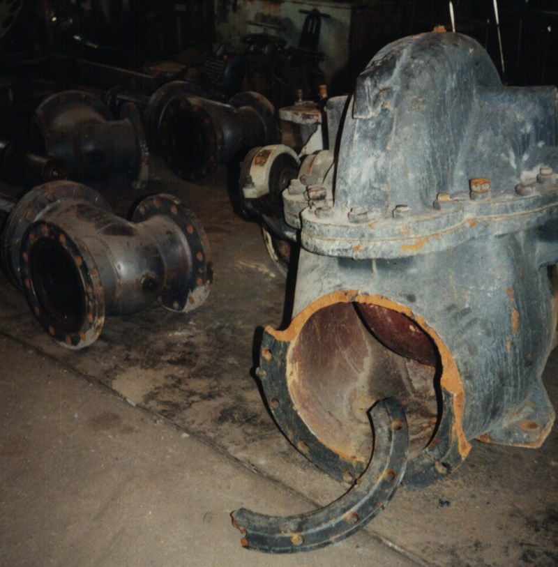 Flanges were rebuilt from pieces. All cracks in the pump casing were detected, cut out and fixed in accordance with Belzona Know-How System Leaflet ENC-1. Steel reinforcing plates were made. Flanges and reinforcing plates were fixed with Belzona® 1111 and secured with screws.