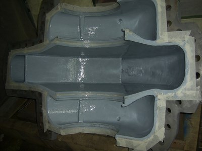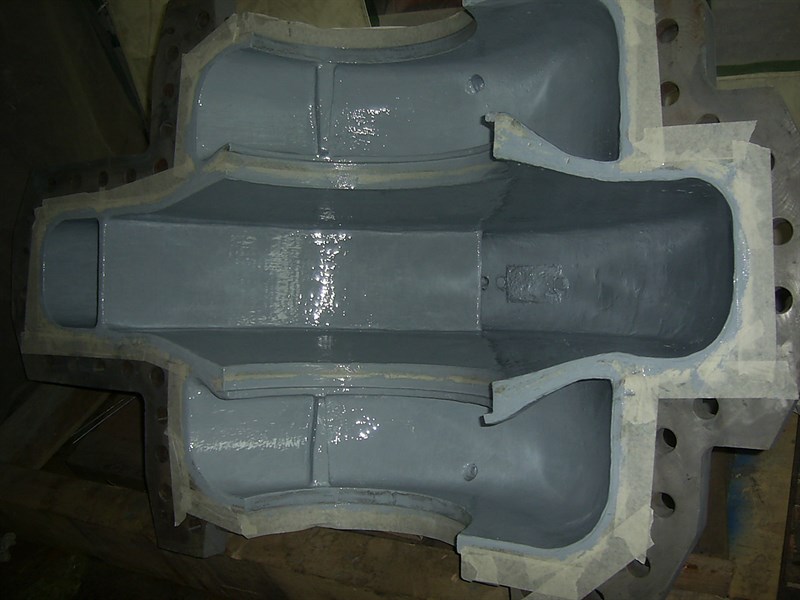 The application was carried out in accordance with Belzona Know-How System Leaflets CEP-1, CEP-2 and CEP-3. The pump surface was prepared by blasting, severe damages and missed edges required reinforcing the steel framework with the application of Belzona 1311 to restore original profile. Forming technique was used for wear ring seats and gland housings. After whole case and cover recovery and flash blasting, two coats of Belzona 1341 were applied.