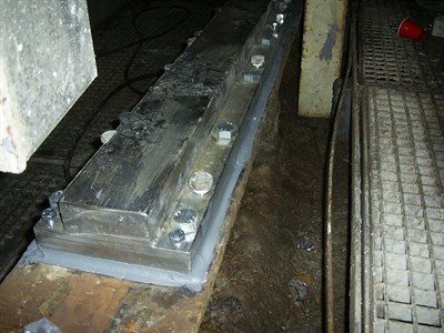 Problem: Irregularities in underlying steel base gave requirement for an irregular shim of between 2 & 10mm for new steel support rail for the press.
