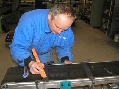Customer had problems with sliding of products. To change the belt was expensive. Creating cleats/treads with Belzona was quick, cheap and effective solution.