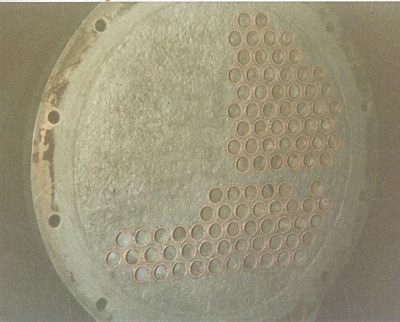 Problem: Corrosion caused by the chemicals in the system were eating away the tube sheet and end cover.
