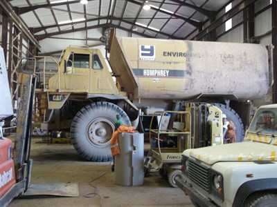 Quarry dust suppression bowser in workshop Damage and Corrosion to be repaired Initial application of Belzona® 1111 Finished application. Cure accelerated by heat