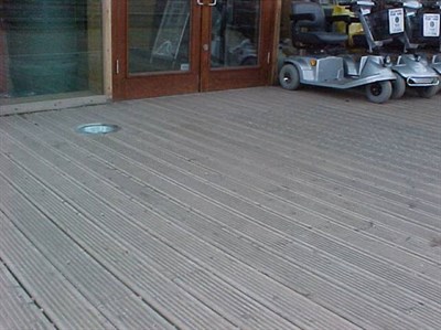 Problem: Slippage problem, especially on the main entrance of the building. The client had tried unsuccessfully to combat the problem by nailing chicken wire to the timber decking, which caused extra trip hazards.