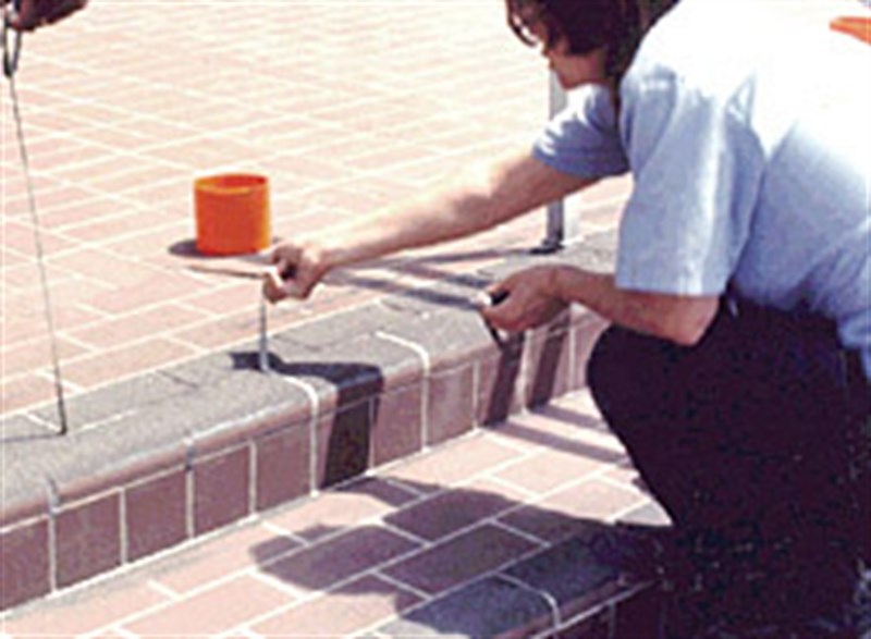 Belzona® 4411 (Granogrip) was applied by brush in conjunction with Belzona® 9221 (Surefoot Aggregate) on the nosings of the quarry tile steps. 1/4 inch tape was cut and placed over the grout lines of the tile to simulate the quarry tile appearance. This area is high visibility for visiting dignitaries and tourists, so emphasis was placed on safety and cosmetics.