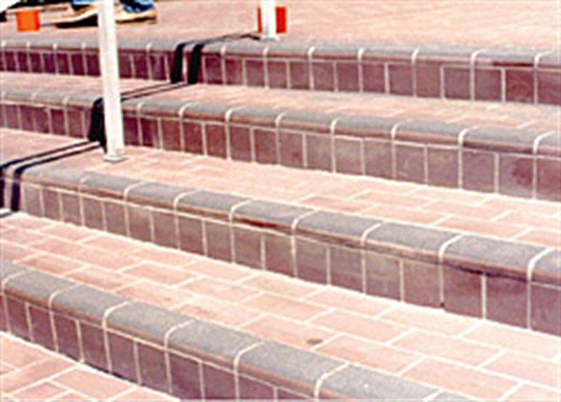 Problem: Various non-skid materials had previously been applied to the nosings of these quarry tile steps with no long-term success.