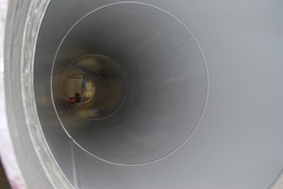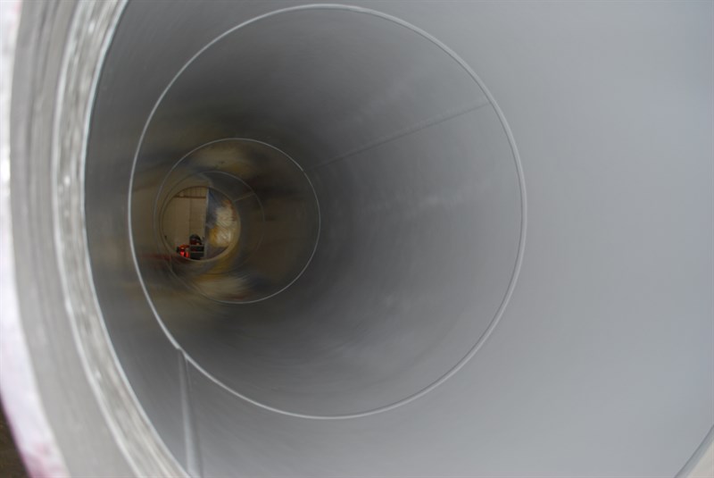 A 52’’ diameter seawater discharge caisson made up of 5 sections of varying lengths (between 11 and 15 meters) on an offshore oil rig required internal corrosion protection.