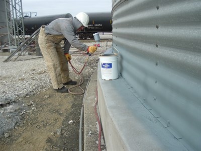 Applying tar around the tank base had proven to be very temporary and unsuccessful. Belzona® 6111 provides excellent corrosion protection to steel wall and Belzona® 3111 provides flexible weatherproof seal. Customer was so pleased with the results of Belzona that 3 more tanks are scheduled for the same treatment.